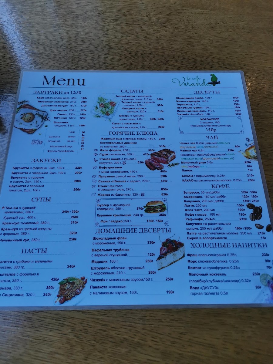 Introducing the Menu at Le Cafe Veranda кафе Веранда